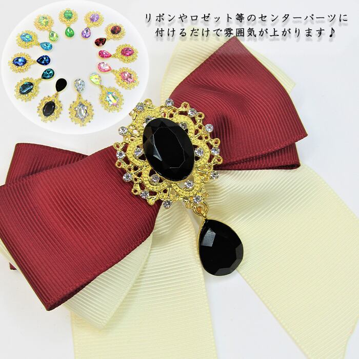 揺れる 雫 センターパーツ ゴールド ビジュー 貼り付け デコ アクセサリー リボン デコレーション ブローチ ハンドメイド リボン DIY ピアス イヤリング ストーン