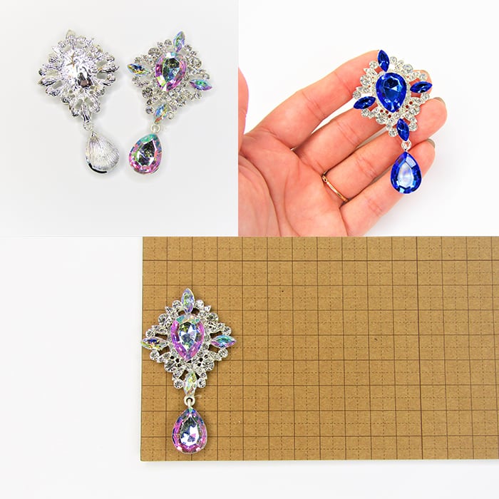 キラキラ 貼り付けパーツ ロザリオ 十字架 ビジュー 揺れるチャーム クリスタル オーロラ センターパーツ アクセサリー リボン DIY ハンドメイド ブローチ 豪華 綺麗 宝石 ロゼット m-0039